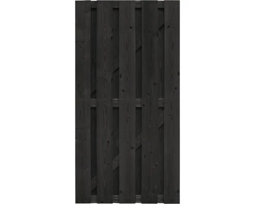 Vuren tuindeur gezaagd zwart geverfd 4,5 x 90 x 180 cm met RVS schroeven. Met FSC keurmerk, wat aangeeft dat het hout afkomstig is uit een duurzaam beheerd bos.