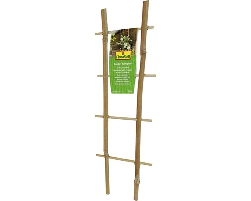 FLORASELF Bamboe planten klimrek heeft een hoogte van ca. 35 cm en de liggende bamboestokken zijn ca. 9 cm breed.
