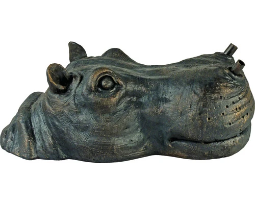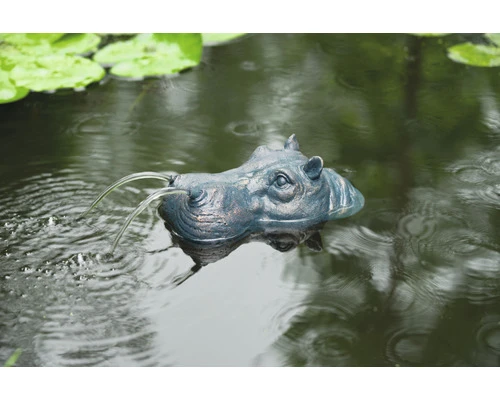 Het Ubbink kunststof (polyresin) drijvende spuitfiguur in de vorm van een nijlpaardenkop heeft een hoogte van 11 cm en is bronskleurig. De waterspuwende nijlpaardenkop zorgt met de waterstraal voor een extra waterbeleving in de vijver.